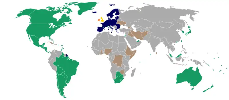 欧洲联盟国家中,除塞浦路斯爱尔兰以外的25个成员国申根区的一部分,该地区实施统一的签证政策。另外欧盟以外的4个国家冰岛列支敦士登挪威瑞士,也是申根区的一部分,因此同样实施与申根区统一的签证政策。[1][2][3][4][5][6][7][8][9][10][11][12][13][14][15][16][17][18][19][20][21][22][23][24]