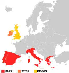 最初的這四個南欧國家文化傳統、地理位置比較接近,加上近年同樣面對財政赤字的愛爾蘭共和國(雖然地理上不屬南欧),最近幾年經濟增長停滯不前,失業率高,又有较高的财政赤字。鉴于情況近似,才有財經人士把五國並列一起。