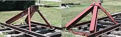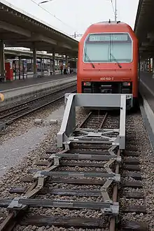 - 用於車鉤關節(coupler knuckle)的止衝擋(通常設於兩軌中央)