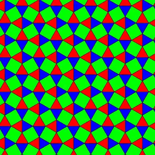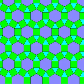 用不同正多边形铺满整塊平面,但交叉点周围的正多边形种类和顺序都相同叫半正镶嵌图。半正镶嵌图有8种。