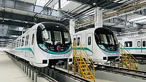 武汉轨道交通19号线工程在大长山路与花山大道路口西南象限地块设花山车辆段,新建主变电所两座,分别与新港线、13号线共用,控制中心设于国博生产指挥中心。线路列车采用市域A型车。[5]