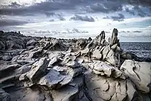 在夏威夷 Maui 由熔岩形成上的“龍牙”地標,是由本莫来岩構成