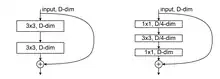 这里的可以是如线性整流函数等任意非线性激活或归一化操作。这种设计减少了残差块间非恒等映射的数量,被用于训练200层到1000多层的模型。[9]