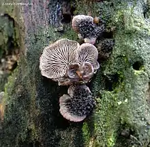 毛伏褶菌,亞歐與北美,屬口蘑科一種,色通常為污黑色。另外,該種野菇也是木棲腐生的小型菇類。