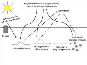 乳胶气球是最常见的一种玩具气球,因为它们具有生物降解能力,当气球从空中掉落到地面时,就开始降解的过程。然而问题在于,聚合物在环境中的显着降解可能需要至少4周,而在水生环境中则需要大约6个月。[7][8] 这个问题会对陆地和水生系统的野生动物产生影响,因为动物会将泄气的气球误认为是食物、筑巢材料或只是无害的东西。当这种情况发生时,它会对动物产生负面影响。例如,一只成鸟会使用泄气的气球,作为巢穴的组成部分,当幼鸟孵化出生时,可能会被气球缠住,从而导致死亡。[9]