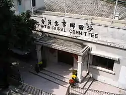 從沙田站(巴士、小巴總站及的士站)旁的天橋望向下面的沙田鄉事委員會舊址
