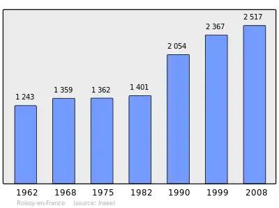 1962-2008年间法兰西地区鲁瓦西人口变化图示