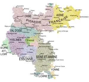 ![]() 法蘭西島在法蘭西王國的位置,1789年 | |