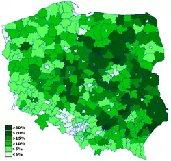波蘭人民黨各地區支持度