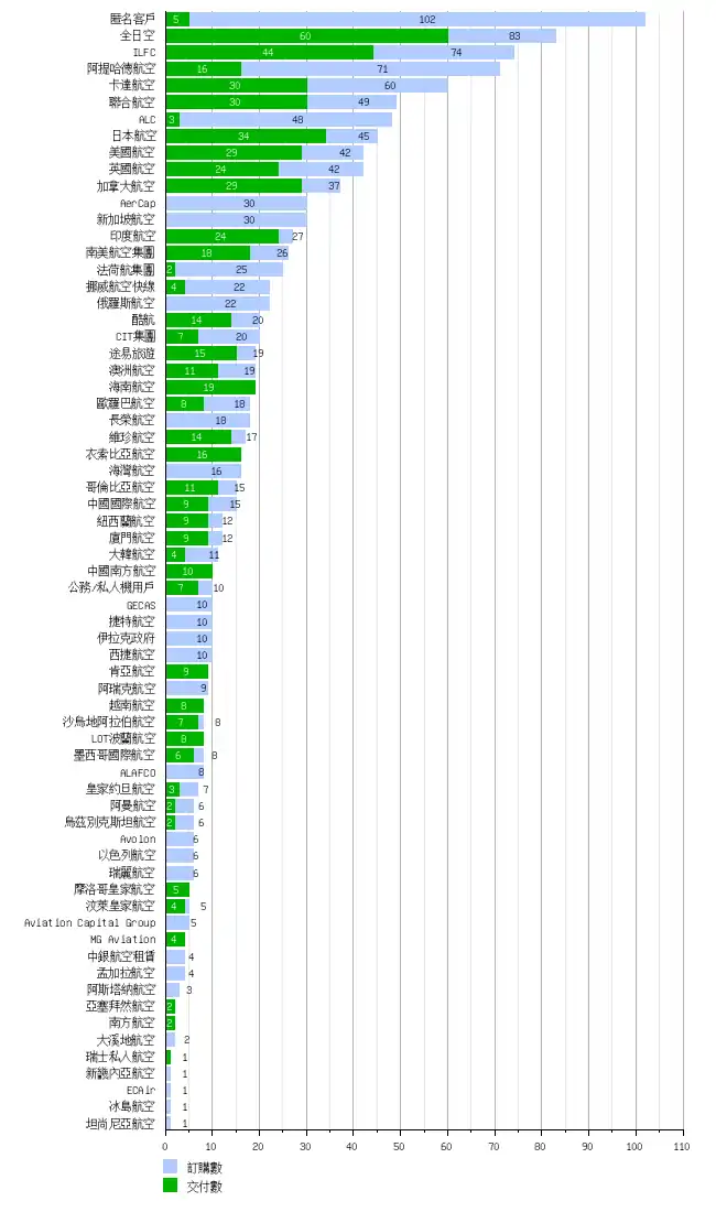 | 787-8 | 787-9 | 787-10 | 總計 | 787-8 | 787-9 | 787-10 | 總計 | |
