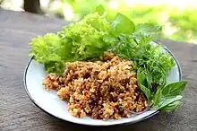 ![]() 拌酸肉(),一種以酸肉做成的泰式沙拉,搭配生菜食用 | |||||||