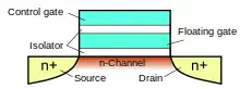 浮栅金属氧化物半导体场效应晶体管(Floating-gate MOSFET,简称浮栅MOSFET或FGMOS)是一种场效应晶体管,其结构类似传统的金属氧化物场效应晶体管(MOSFET) 。FGMOS的栅极是电绝缘的,从而在直流电中产生浮动节点。在浮栅(floating gate)上方以沉积方式构造多个次级栅极或输入电极,与浮栅绝缘。这些输入与浮栅仅有电容耦合连接。由于浮栅完全被高电阻材料包围,因此其中包含的电荷量会长时间保持不变。通常使用Fowler-Nordheim隧穿和热载流子注入机制来修改存储在浮栅中的电荷量。