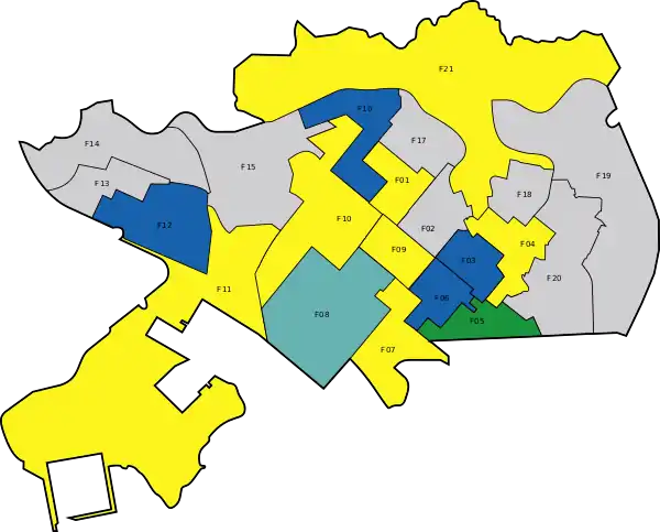 | F21 | 李鄭屋 | 議席懸空 | 原為江貴生擔任此區議員,因請辭而在2021年7月8日任期結束 | ||
