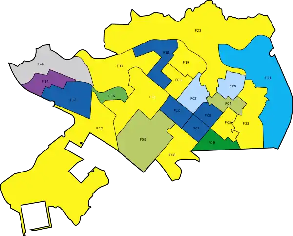 | F02 | 長沙灣 | 議席懸空 | 原為李文浩擔任此區議員,於2021年9月24日因拒絕出席區議員宣誓儀式[2],隨後被民政事務局局長徐英偉取消其議員資格,在2021年9月23日任期結束 | ||
