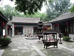 湘子庙为位于中国陕西省西安市碑林区南门里湘子庙街西端三岔路口处的一座道观,坐西朝东,与书院门隔南大街遥遥相对,南距西安城墙南门西门洞约100米,东距南大街约200米。庙址相传为“八仙”中的韩湘子出家之地,创庙时间有五代和宋代等多种说法,现格局奠定于明代,民国后改为它用并遭到损毁,现建筑为2005年开始修复,中轴线上依次为山门、灵官殿和湘祖殿,灵官殿前有两配殿围合成前院,院中有香泉与两株树龄50余年的洋槐[1]。