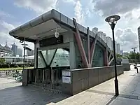 源深体育中心站共有4个出入口,其中1、4号出入口与2、3号出入口分别位于道路两侧,在非付费不连通,各出入口如下所示: