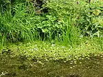 在荷兰的一条沟渠里,水草在生长,右边是慈姑。
