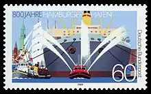 德國聯邦郵政在1989年發行「800年漢堡港」紀念郵票
