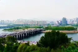 ![]() 側拍漢江大橋,中間為島嶼為鷺梁島 | |