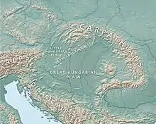 潘諾尼亞平原(德語:),又稱喀爾巴阡盆地(匈牙利語:)及潘諾尼亞盆地,[1][2][3][4]是歐洲一大平原,分屬匈牙利、奧地利、克羅埃西亞、捷克、斯洛伐克、塞爾維亞和羅馬尼亞。周邊地區包括斯洛文尼亞和波斯尼亞。