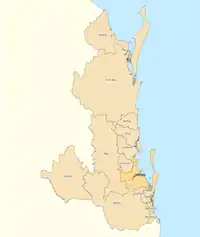 | 懷德灣 | 1901 | 昆士蘭 | Region of Wide Bay–Burnett | 地理位置 | Andrew Fisher, 總理 沃倫·特拉斯,國家黨黨魁、副總理 |