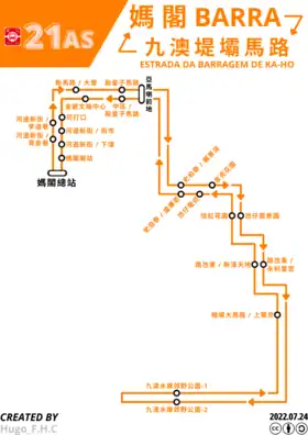 澳門巴士21AS路線是已取消的路線,由澳巴經營,往返媽閣和九澳堤壩馬路。