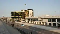 整個建築包括了一棟兩層樓高的停車場、維修中心、行政大樓和一座控制塔台。此塔台在完工後也成為澳門的著名地標之一。其中的隧道、通道與高架道路等建設主要連接並貫通著整個賽車場的裝置、高速快艇的渡口、地下停車場,與市中心的多項公共設施。