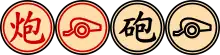 為投石機。炮為火藥動力的投石機。在古代亦有使用“”、“包”,“”為“”的古字,“包”則是為了分辨敵我而使用,與字義不符。