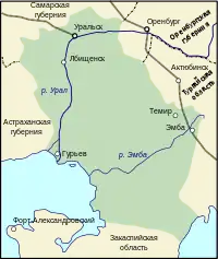 面積323,700平方公里,1879年人口為645,121人。[1]首府烏拉爾斯克。下分四縣。