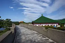 然而,這些來自中國的紅陶瓦無法承受冬季凍裂的問題,所有設施都必須進行修葺[4][5]。2001年投入數億日圓將門、迴廊、主要建物的屋頂換上日本產的瓦片,2006年投入8300萬日圓修繕販賣部與涼亭的屋頂,2010年廁所的屋頂花費超過5700萬日圓,被批評不合常理、浪費公帑[6]。