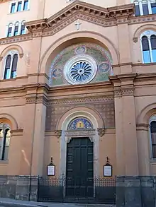 该堂外观为新罗马风风格,内部为新文艺复兴风格。