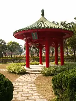 一般稱為獅子亭的涼亭,正式名稱為明仁亭