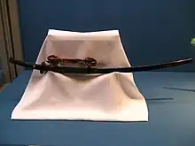 - 鞘及柄上纏繞組織的「糸巻太刀」樣式是在進入鎌倉時代後開始普及,而在室町時代以後,則廣泛採用纏繞下面(指刀鞘表面)的錦緞。