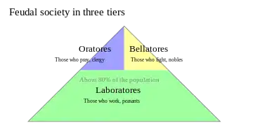 首先存在領域等級,但各行業也存在,婚姻和貞潔的狀況,罪惡的狀態。在宴會庭存在“身體和嘴巴的四種等級':麵包師傅、斟酒役、切肉工,和廚師。在教堂有祭司制度的階級和修道院的階級。最後,還存在騎士制度的不同階級。[2]