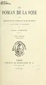 - Langlois, Ernest, ed. Le Roman de la Rose par Guillaume de Lorris et Jean de Meun. 5 vols. Société des Anciens Textes Français. Paris: Firmin Didot, 1914–24.