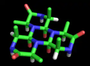 Rothe M and Roser KL. (1988) "Conformational flexibility of cyclic tripeptides", Abstr. 20th Europ. Pept. Symp. Tübingen, p. 36. - Wieland T and Mohr H. (1956) "Diacylamide als energiereiche Verbindungen. Diglycylimid", Liebigs Ann. Chem., 599, 222–232.