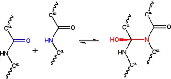 林奇和威廉·阿斯特伯里也写了一篇论文,指出>CαHα和酰胺羰基>C=O酮烯醇异构化的可能性,产生>Cα-C(OHα)< 交联结构再次将氧转化为羟基[39]. 这样的反应可能会产生五元环,而经典的Cyclol假设会产生六元环。这种酮烯醇异构化并没有进一步发展[40].