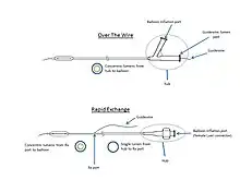 在血管整形術中使用的氣球導管,有兩種常用設計:附導線(Over-the-Wire,OTW) 或 快速抽換式(Rapid Exchange,Rx)。現在冠狀動脈的球囊導管,九成的設計是快速抽換式。附導線設計的氣球導管,對於處理曲折的血管路徑,較為方便,但增加了消氣時間、縮減了氣球擴增的範圍。當氣球導管在阻塞的冠狀動脈中,擠壓血栓的術式,稱為球囊血管成形術(plain old balloon angioplasty ,POBA)。球囊導管也被應用於置放血管支架。製作廠商先將支架套在未充氣的氣球上,再送到心導管室。當心臟內科醫師將氣球充氣,支架便被撐開。氣球消氣後,由於支架的特殊設計,支架繼續維持撐開的狀態,支撐住血管壁,此時便可移除氣球導管。這樣的支架稱為氣囊可撐開支架。