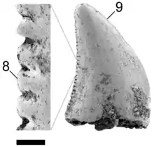 | R. gilmorei的牙齿特写,可见其牙冠上的小齿 | |