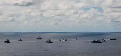 | 亞伯拉罕·林肯號航空母艦 莫比爾灣號飛彈巡洋艦 費茲傑羅號驅逐艦 格里德利號驅逐艦 桑普森號驅逐艦 史普魯恩斯號驅逐艦 威廉·P·羅倫斯號驅逐艦 查菲號驅逐艦 埃塞克斯號兩棲攻擊艦 麥可·蒙索爾號驅逐艦 佩科斯號油料補給艦 亨利·J·凱澤號油料補給艦 邁阿密號核動力攻擊潛艦 夏洛特號核動力攻擊潛艦 華盛頓錢伯斯號物資補給艦 | |