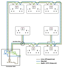 环形电路和相关的BS 1363插头和插座系统是於1942-1947年间在英国开发的[4]。它们通常在英国使用,而在爱尔兰共和国则较少使用。它们还出现在阿拉伯联合酋长国、新加坡、香港、北京、印度尼西亚以及受英国影响較大的许多地方,例如塞浦路斯和乌干达。