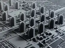 柯比意提議將巴黎市中心5平方公里左右的城市拆除,以18座玻璃幕牆十字型高樓取代,並將這些大樓取名為Cartesian Skyscraper(法文中Cartesian為理性之意義)。每棟大樓之間相距近400公尺,並以寬廣的綠帶相隔,以確保每棟大樓都能夠擁有充足的日照及空氣對流[2]。
