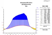 Walter (Walter, 1985) 自早期(1973年起)即對降雨的有效性進行研究,發現,地表的蒸發量隨著土壤、風等因素有所不同,但各地溫度的曲線與蒸發量曲線常為平行,故地表的潛在蒸發量可以以溫度曲線做為代表。在一張圖上同時放上降雨量,及用以估算蒸發量的溫度線,即可得知當地大概的乾濕季變化。根據 Gaussen (1954) 的研究,溫度及降雨量刻度設置成 10℃ = 20 mm 十分符合地中海型氣候實際之狀況。但草原地區則建議設成 10℃ = 30 mm,以更清楚的顯示乾季的狀況。以附圖(右圖:深圳的生態氣候圖)為例,深圳在每年的11月至隔年的一月之間是缺水的季節,4月至10月之間則可利用水多屬於重濕季,其他的部份則是濕潤季,降水與蒸發的水量約略相等。由此圖可明顯見到植物植被所受到氣候的條件,從而可以預測植被生長分布狀況,同時也可預測其他生物適應的狀態。