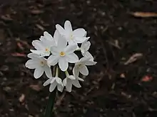 白水仙(Narcissus papyraceus),又叫纸白水仙,是水仙屬的一個種,種加詞的意思是“紙一樣的”[1]。它原產於地中海附近的歐洲和北非地區,是一種較為常見的觀賞植物[2]。
