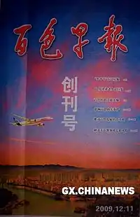 《百色早报》是2009年创刊的一份新的都市报。有别于右江日报社主编的《右江日报》注重党政方面的新闻,百色早报关注的新闻内容是社会和生活类。