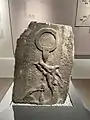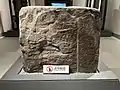 重慶市博物館所保存的左側闕身殘段,高80公分,面寬及進深尺度與右闕相應部位相同.除了柱形,右側面刻青龍銜璧,左側面刻伏羲捧日。