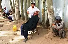 喀什市路邊仍在使用直式剃刀剃须的人