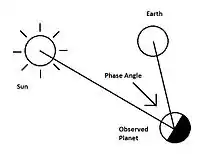 月球(參見月相)、金星和水星從地球觀測時的相位角從0到180°變化。外側行星的相位角範圍較小,例如火星相位角最大約45°[4]。