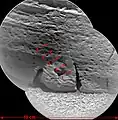 2012年10月7日,在石巢沙地上发现了一块神秘的明亮物体(图像),引起了科学界的兴趣。对该物体拍摄了数张特写照片(特写1 (页面存档备份,存于)) (特写2 (页面存档备份,存于)),科学家们的初步解释表明该物体是“航天器碎片” [2][3][4]。尽管如此,在附近沙地中,进一步的图像还检测到了其他明亮的颗粒(图像 (页面存档备份,存于)) (特写1 (页面存档备份,存于)),这些新发现的物体目前被认为是火星的原生物质[2][5][6]。
