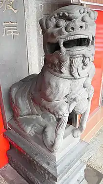 石狮一詞通常是指放在建築物大门口两侧的一对狮子造像,而其材質便不單限於石材,亦有以水泥[1]加鋼筋或玻璃纖維製成的獅子,甚或金屬所製,於此意義上都統稱為「石獅子」。